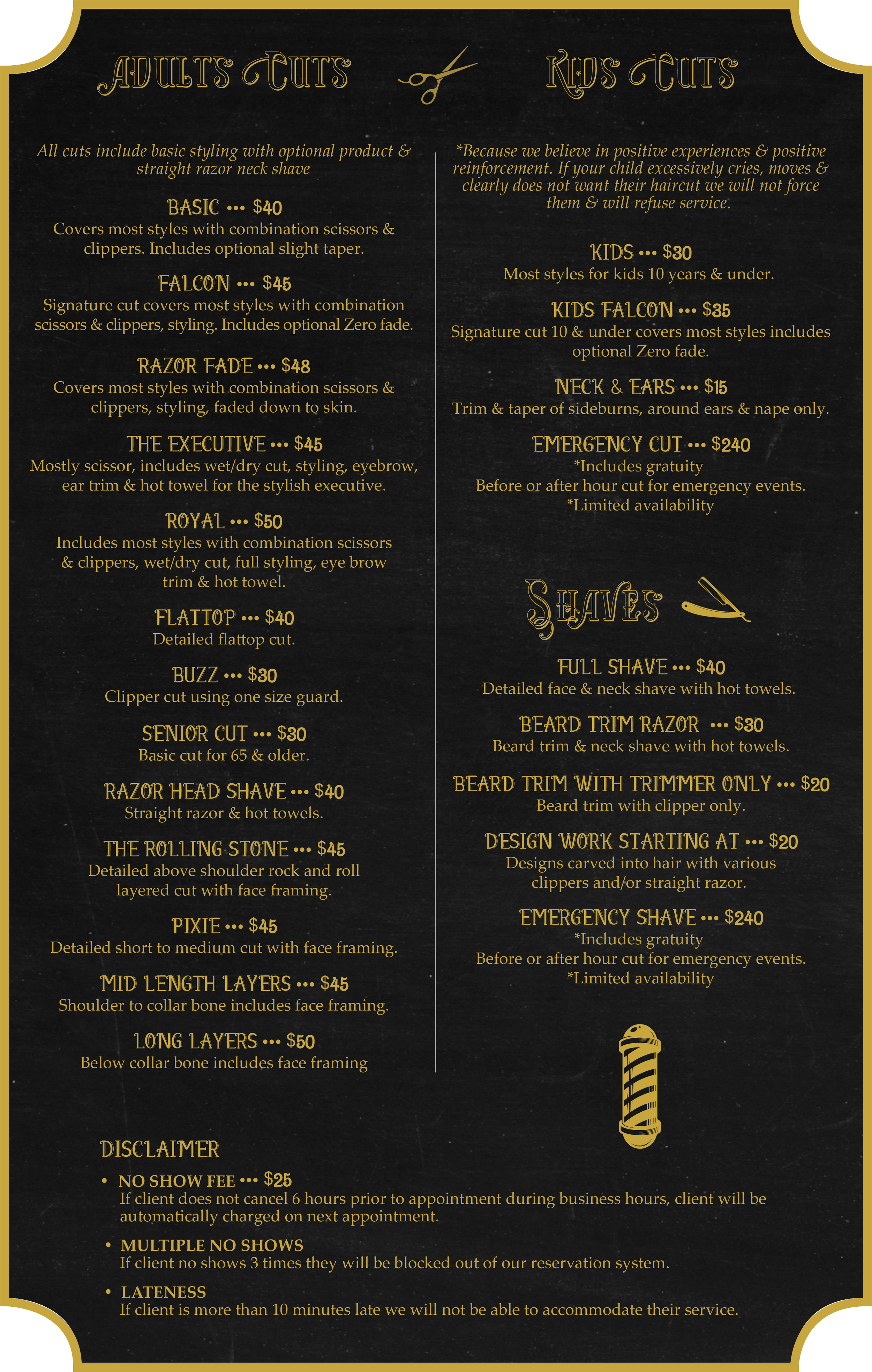 Created from passion and dedication to the art and craft of barbering, Falcon Barbershop delivers old world craftsmanship and detail with cutting edge style.